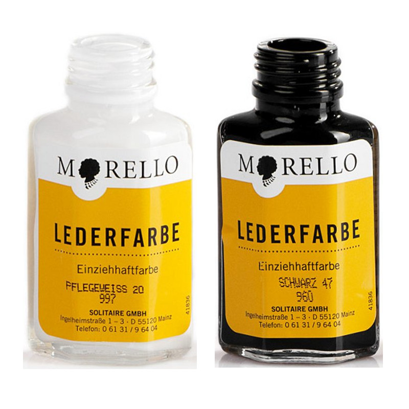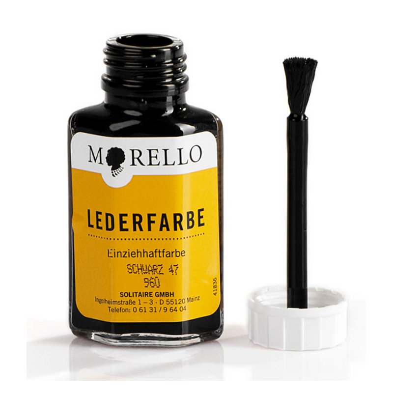 Anwendung: Das Leder vor dem Färben gut reinigen. Alte Farb- und Pflegemittelreste, besonders in Falten mit Morello Entfärber sorgfältig entfernen. Anschließend mit Morello Einziehfarbe einpinseln. Der Pinsel ist im Deckel integriert. Nach dem letzten Auftrag sollte das gefärbte Teil an einem staubfreien Platz gut trocknen und nach dem Trocknen mit einem fusselfreien Lappen oder weichen sauberen Bürste aufpolieren.i