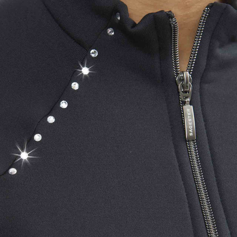 Thermojacke von Sagester mit elegantem Strassmotiv. Sie hält warm, ist atmungsaktiv